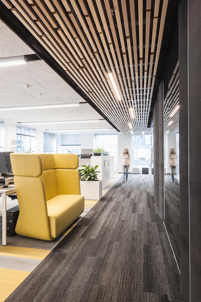 辦公區(qū)域的設(shè)計(jì):此處大致有辦公與動(dòng)線組成,動(dòng)線布置在空間的一側(cè),目的就是為了縮小對(duì)空間的浪費(fèi),同時(shí)為辦公空間營(yíng)造更好的空間氛圍,辦公工位由3人為小組、6人為一大組,組與組之間有動(dòng)線分離,這樣保證部門與部門之間的分離與彼此之間的合作,沙發(fā)的融入為空間帶來(lái)了新的變量。