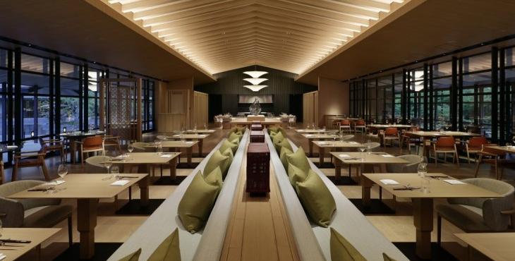 位于日本京都北部的Roku Kyoto度假酒店,由泰國曼谷的設(shè)計(jì)事務(wù)所Blink設(shè)計(jì)。當(dāng)?shù)厣瞥龉そ?,日本比較有聲譽(yù)的寺廟大多集聚于此,匠人精神和宗教元素賦予了酒店獨(dú)特的魅力。林立的纖細(xì)柱網(wǎng)結(jié)構(gòu),其設(shè)計(jì)靈感來自于風(fēng)中搖曳的竹子,生動場景的建立,使住客與自然產(chǎn)生親密的聯(lián)系。