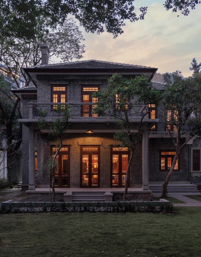 接到業(yè)主的委托來(lái)到現(xiàn)場(chǎng),屋前是西湖北里湖的波光,屋后是香格里拉酒店的燈火。一座二層四開(kāi)間的花園小樓,青磚清水墻坡頂平瓦四落水設(shè)計(jì),門窗飾以新古典風(fēng)格的門套和窗套,共同勾勒出一幅經(jīng)典民國(guó)畫卷,心中感到莫名的敬畏與喜悅。