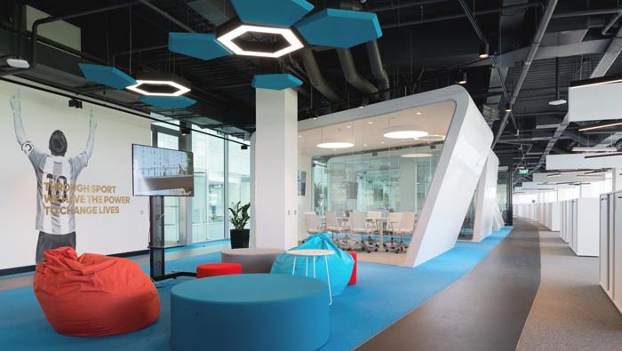 本次為運(yùn)動(dòng)用品制造商廠家辦公室裝修設(shè)計(jì)項(xiàng)目,設(shè)計(jì)師在設(shè)計(jì)的時(shí)候,首先就是與業(yè)主進(jìn)行了深層次的交流,在交流的時(shí)候設(shè)計(jì)師希望了解的是企業(yè)的文化與理念,以此為起點(diǎn)為企業(yè)打造適合未來發(fā)展的辦公空間,在設(shè)計(jì)師看來設(shè)計(jì)不僅僅是要看眼下,最重要的是著眼未來。