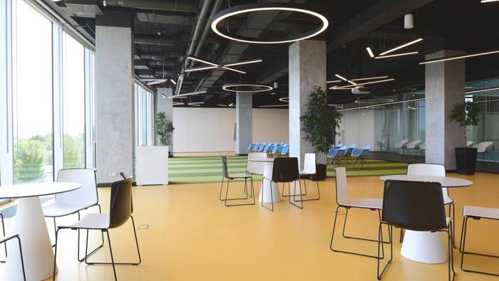 休息區(qū)域的設(shè)計(jì):設(shè)計(jì)師在設(shè)計(jì)的時(shí)候,將其與培訓(xùn)區(qū)域合為一體,在設(shè)計(jì)師看來培訓(xùn)區(qū)域不會(huì)天天用到,故此設(shè)計(jì)師希望為此處帶來活力,在此處給人的第一感覺就是放松,這樣的感覺在如今的時(shí)代甚是難得,設(shè)計(jì)師希望讓員工在此處與大自然融為一體,進(jìn)入那夢(mèng)寐以求的靜心狀態(tài)。