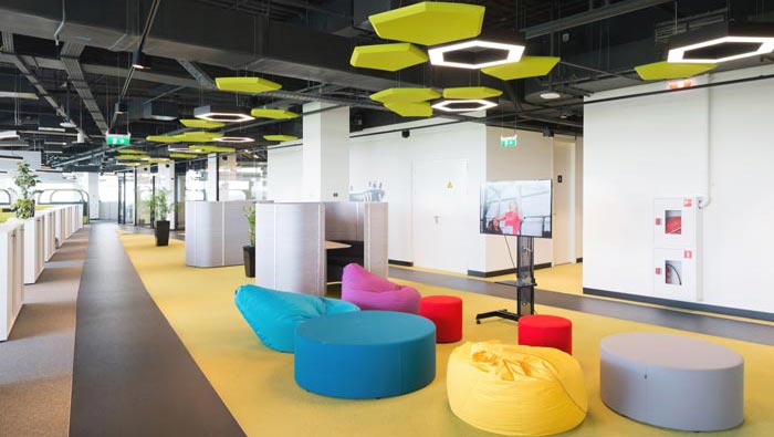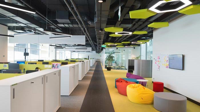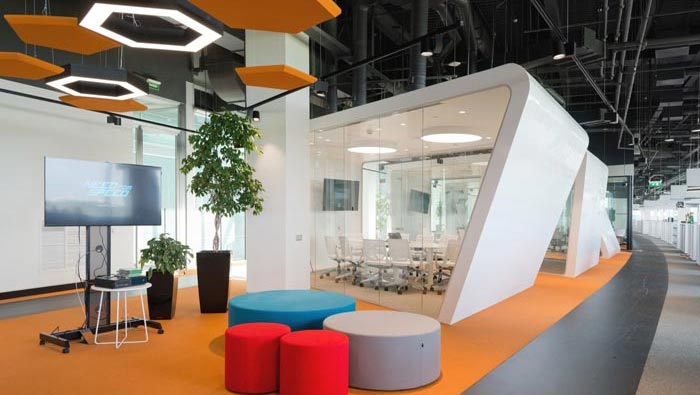 辦公區(qū)域的設(shè)計(jì):設(shè)計(jì)師在設(shè)計(jì)的時(shí)候,將辦公空間采用開放式的設(shè)計(jì)手法,在設(shè)計(jì)師看來開放式有其不可替代的優(yōu)勢(shì),在設(shè)計(jì)的同時(shí)設(shè)計(jì)師又利用辦公桌+隔斷將其分離成一個(gè)小小的空間,在開放的同時(shí)為員工預(yù)留足夠的私人空間,將開放式空間的優(yōu)勢(shì)發(fā)揮到極致。