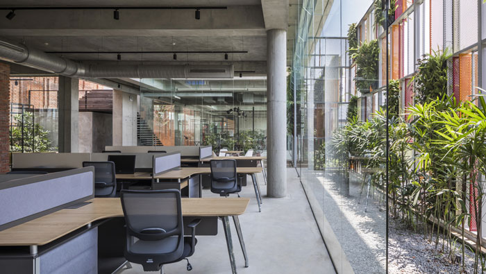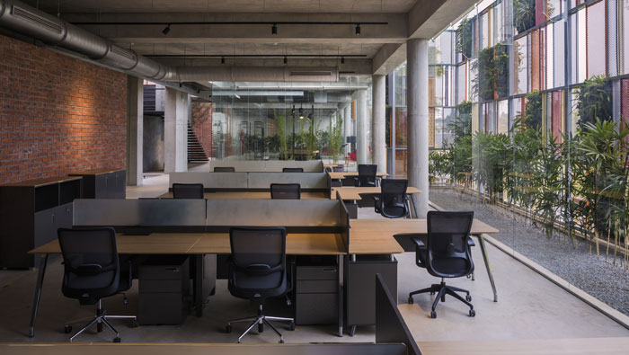 本次為工廠辦公大樓辦公室裝修設(shè)計(jì)效果圖,辦公室設(shè)計(jì)面積4000平方,設(shè)計(jì)師在辦公室設(shè)計(jì)中,以現(xiàn)場環(huán)境保持一致為前提,目的就是打造一個(gè)融合與廠房的辦公樓,而不是一個(gè)獨(dú)立的裝飾。
