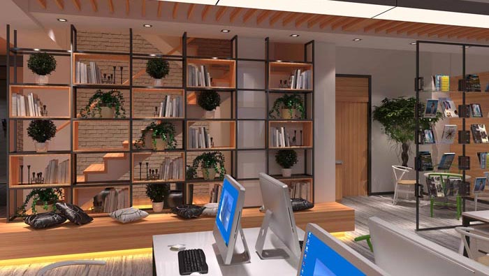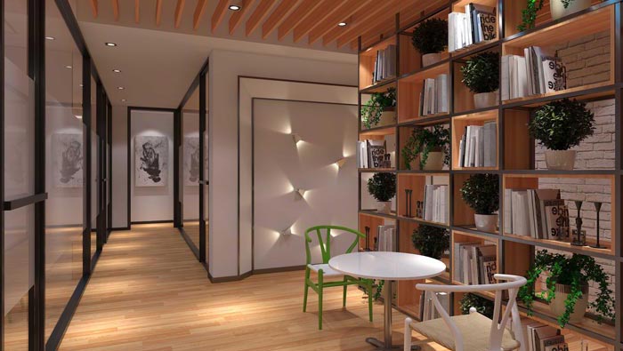 接待區(qū)域的設計,設計師在設計的時候,將其安置在辦公室區(qū)域的一側,整個空間按照4:6的比例對空間進行分離,4分為辦公區(qū)域、6分為接待區(qū)域、休息區(qū)域、動線的結合,這樣的設計將室內(nèi)的空間有效的、合理的結合并加以利用。