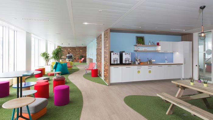 休息區(qū)域的設(shè)計(jì):設(shè)計(jì)師在設(shè)計(jì)中參考了釋放的理念,也是設(shè)計(jì)師的一種嘗試,在設(shè)計(jì)師看來(lái)休息區(qū)域本來(lái)就是要為員工一個(gè)無(wú)壓力的空間,故此設(shè)計(jì)師將設(shè)計(jì)完全刪掉留下一個(gè)空空的空間,讓空間有了更多的可能,將軟裝引入空間,讓員工隨自己的愛(ài)好進(jìn)行擺設(shè),也為員工營(yíng)造了一個(gè)無(wú)拘無(wú)束的空間。