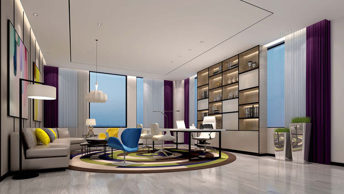 總經(jīng)理辦公室的設(shè)計(jì),設(shè)計(jì)師以色彩之間的搭配做為主要設(shè)計(jì)手法,色彩的轉(zhuǎn)變可以很好的為空間服務(wù)。