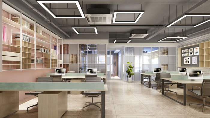 辦公區(qū)域的設計,以左右對比的方式進行設計,設計師為了更好的利用空間,將展示區(qū)域以隔斷的形式展現(xiàn)在兩邊墻壁上,達到辦公區(qū)域與展示區(qū)域的完美融合。