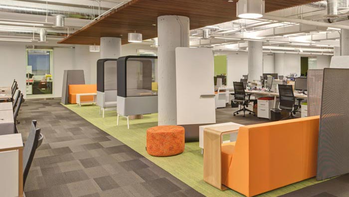 休息區(qū)域的設(shè)計(jì):設(shè)計(jì)師在設(shè)計(jì)的時(shí)候,將其安置在辦公空間的中心區(qū)域,此處的中心區(qū)域指的是兩個(gè)辦公空間之間的空曠空間,此處采用的與交流空間的設(shè)計(jì)類似,其一就是與空間進(jìn)行分離,其二就是與整個(gè)空間進(jìn)行搭配,在設(shè)計(jì)師看來這是勞逸結(jié)合的一個(gè)經(jīng)典配比。