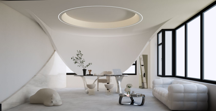 這是一個我們設(shè)計的服裝公司的辦公空間,空間有1200方的面積??臻g包括前臺,辦公區(qū),服裝展示區(qū),獨立辦公室和多間直播間和倉庫發(fā)貨區(qū)組成。