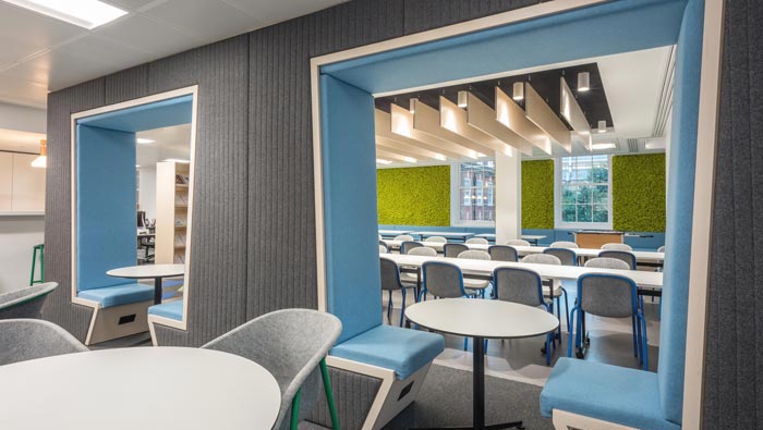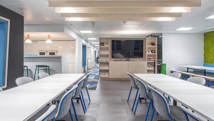 休息區(qū)域的設計:設計師在設計的時候,想要為員工打造一個集合休息與學習的空間,在設計師看來員工需要的不僅僅是休息,更需要的是一個交流的場所,在此間讓員工可以無憂無慮進行學習與相互討論,讓員工在此間不斷成長與突破。