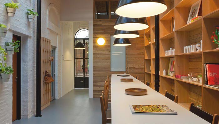 辦公室內(nèi)外空間的設(shè)計:在此處可以清晰的看出整個空間,所表現(xiàn)出來的已經(jīng)是和諧和清新,和諧是不希望已經(jīng)設(shè)計的突兀影響到客戶的創(chuàng)作,清新是因為創(chuàng)作是艱難的、漫長的,故此一個好的心情十分重要,在設(shè)計師的眼中沒有什么比得上自然更讓人能夠擁有好的心情。