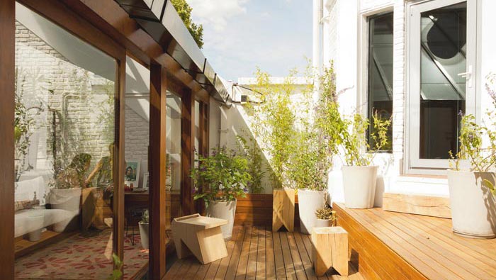 辦公區(qū)域的設(shè)計:由于客戶需要一個安靜的區(qū)域進(jìn)行構(gòu)思與創(chuàng)作,故此設(shè)計師在設(shè)計的時候,在位置的選擇上選用了室內(nèi)、室外相互交接區(qū)域,在設(shè)計師看來人不能一直把自己關(guān)在屋子里面,為了更好地方便客戶創(chuàng)作,故此將室外、室內(nèi)融合是一個不錯的構(gòu)想。