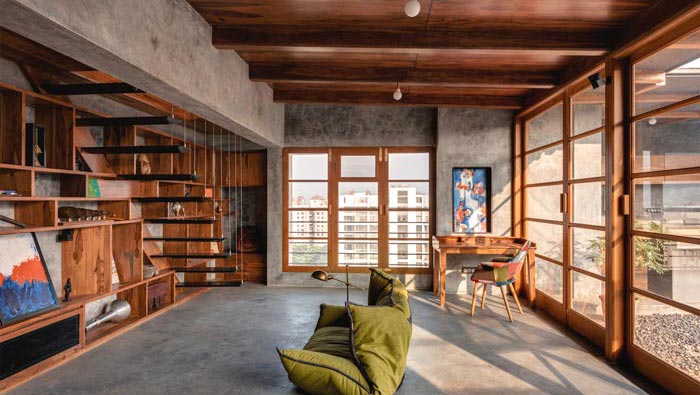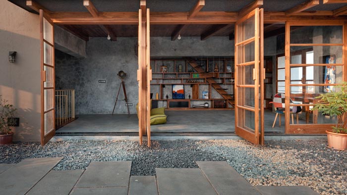 大門的設(shè)計(jì):此處位于頂層的復(fù)式空間之內(nèi),空間共兩層外加一個(gè)陽臺(tái),在門的設(shè)計(jì)上設(shè)計(jì)師采用傳統(tǒng)木門為空間打造了3扇大門,門的寬度幾乎與室內(nèi)空間一致,這樣做的目的就是盡可能的擴(kuò)大空間的視覺效果,讓室內(nèi)空間與室外空間形成一個(gè)有效的互動(dòng)。