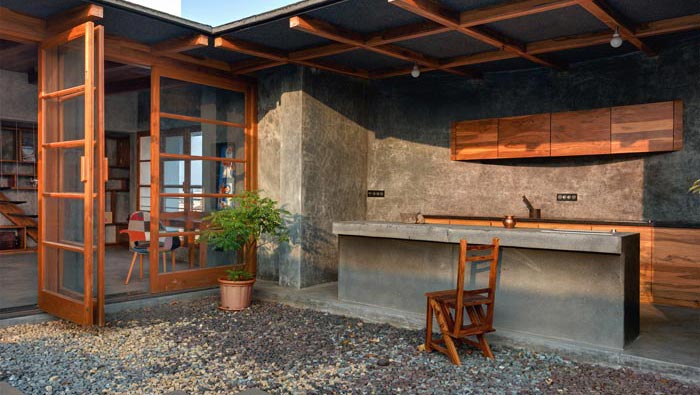 本次為私人攝影工作室裝修設(shè)計(jì)項(xiàng)目,空間是一個(gè)復(fù)式格局,在實(shí)地考察的時(shí)候,設(shè)計(jì)師與客戶之間也進(jìn)行了初步的交流,在交流中設(shè)計(jì)師了解到,客戶希望打造一個(gè)室外與室內(nèi)相結(jié)合的空間,由于攝影的需要,對(duì)于采光的要求也十分高,最后設(shè)計(jì)師的方案就是將其打造成一個(gè)混合的屋頂花園。