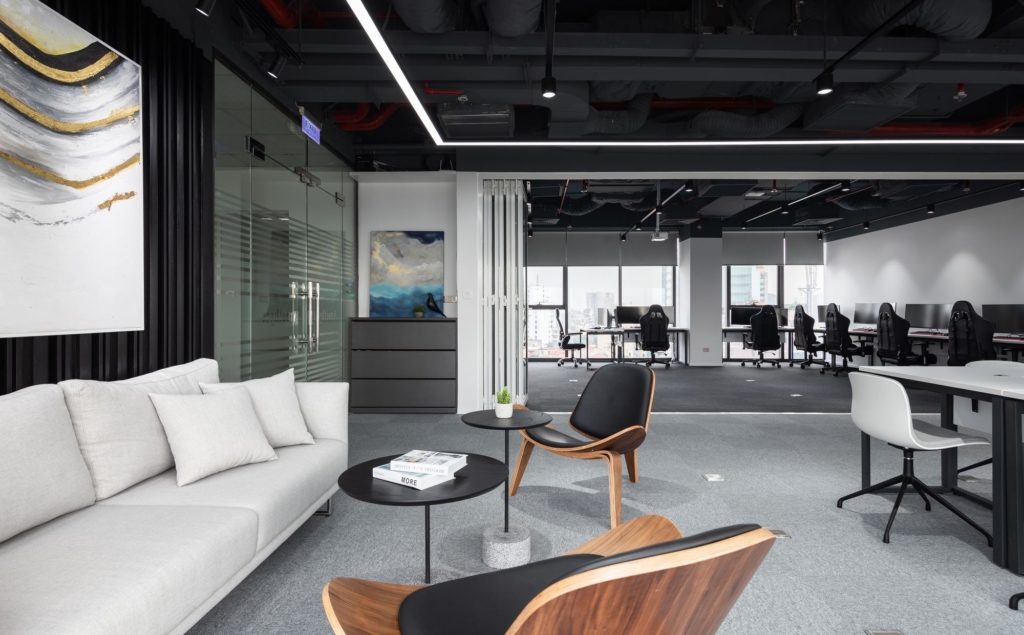 在這個(gè)辦公室里,靈活性是我們的首要任務(wù),因此我們已經(jīng)在許多不同的地方安排了樓層插座,并為它們配備了高速無(wú)線網(wǎng)絡(luò)和5G系統(tǒng),以幫助用戶在辦公室的任何位置工作,包括在等候區(qū)的沙發(fā)上為客人服務(wù)。