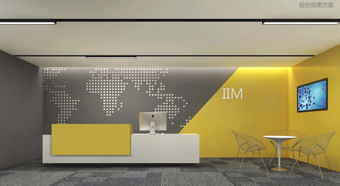 科技公司辦公室前臺設(shè)計(jì):設(shè)計(jì)師在設(shè)計(jì)的時候,使用了黃色、灰色、白色三色相互結(jié)合的設(shè)計(jì)手法,設(shè)計(jì)師希望通過色彩之間的相互轉(zhuǎn)換,黃會之間的色變將空間的簡潔之風(fēng)推至頂峰,灰色的沉著與冷靜來表達(dá)企業(yè)對于產(chǎn)品的精益求精。