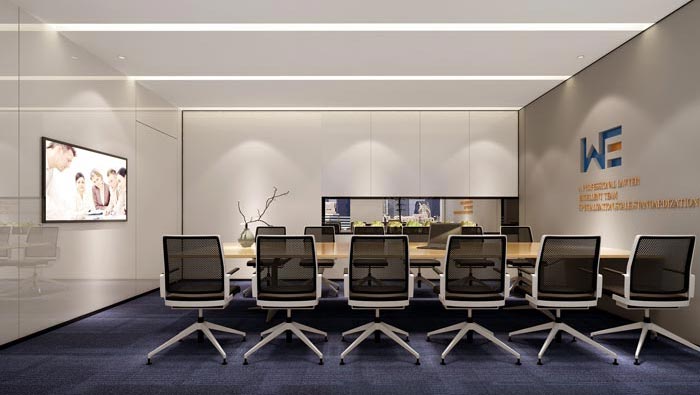 會議室的設計,設計師在設計的時候,將會議桌安置在空間的中心區(qū)域,一方面利于會議的開展,因為電視局限了空間的某種屬性,另一方面這樣的設計釋放了空間的動線,不會受到空間局限。