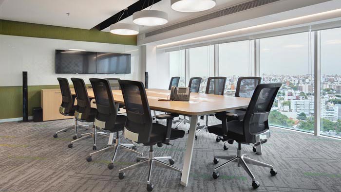 會議室的設(shè)計:設(shè)計師在設(shè)計的時候,將其安置在靠近窗戶的空間區(qū)域中,在設(shè)計師看來會議是企業(yè)發(fā)展所不可替的,但是設(shè)計師希望可以改變會議室給人枯燥、無味的感覺,故此設(shè)計師將采光、室外景色通過設(shè)計的手法將其引入室內(nèi),讓會議變得有趣起來。