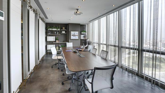 會議室的設計:設計師在設計的時候,將其安置在獨立的空間之中,設計師將會議桌安置在空間的中心區(qū)域,以此保證空間的動線得以完整,其次就是空間的一面完全由落地窗戶組成,這樣保證了空間的通透與明亮,讓會議變得有意思起來,讓氣氛不在沉悶。