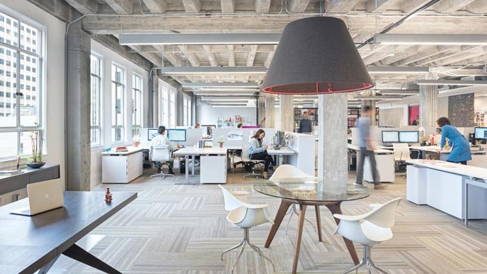 辦公區(qū)域的設(shè)計(jì):設(shè)計(jì)師在設(shè)計(jì)的時(shí)候,按照部門(mén)的不同將空間分成若干個(gè)小型辦公空間,然后將小型辦公空間按照一定的比例進(jìn)行排列,以此形成一個(gè)開(kāi)放與獨(dú)立相融合的辦公空間,在設(shè)計(jì)師眼中不管是開(kāi)放式的還是獨(dú)立式的,都是優(yōu)缺點(diǎn)的,設(shè)計(jì)師這樣做的目的就是希望將缺點(diǎn)進(jìn)行中和。