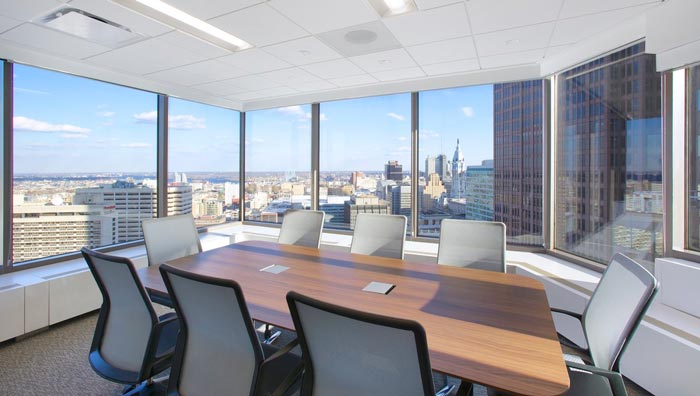 會(huì)議室的設(shè)計(jì):加長(zhǎng)版的會(huì)議桌豎著擺放在空間之中,基本的空間屬性依然形成,設(shè)計(jì)師要做的就是將空間的每一處空間,都得到合理的安置,沙發(fā)背靠墻體即增加了空間的容納能力,也沒(méi)有破壞整個(gè)空間的格局,反而為欣賞美景提供了平臺(tái)。