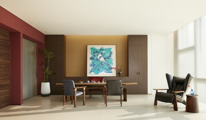 這是一個船運(yùn)公司的辦公室設(shè)計。設(shè)計師通過思考空間、自然和使用者之間的關(guān)系,將空間定義為一個敘述者,通過動線和介質(zhì)的作用,傳遞生活態(tài)度。