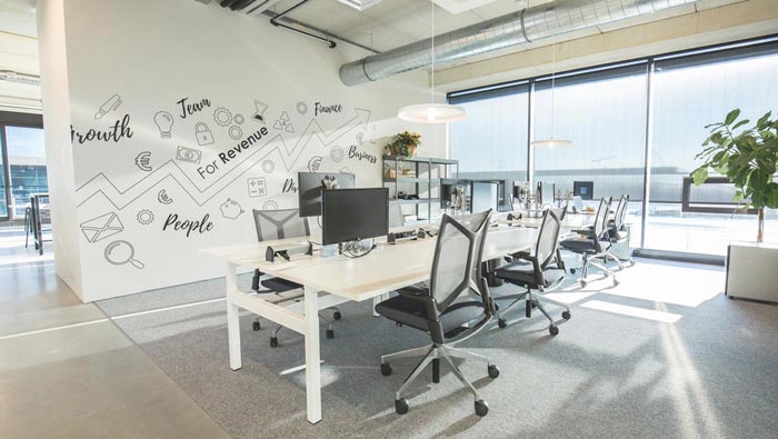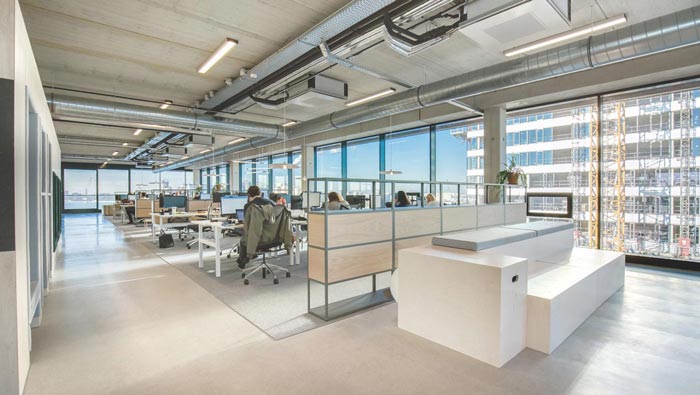 辦公室辦公區(qū)裝修:進(jìn)入此處后開(kāi)放式的空間引入眼簾,給人的第一感覺(jué)就是我若在此地辦公該有多好,保證員工的創(chuàng)新能力也十分必要,所以人性化的辦公空間也就勢(shì)在必行。