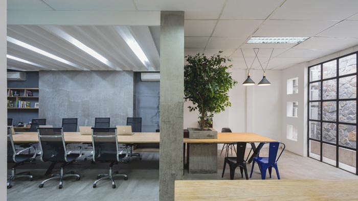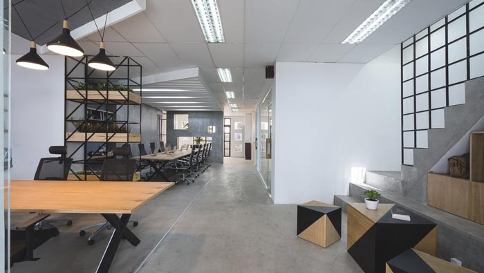 辦公室辦公區(qū)設(shè)計:此次的設(shè)計與其他的不太一樣,因為空間中有兩個辦公區(qū)域,一個為開放的辦公區(qū)域,一個為封閉的辦公區(qū)域,設(shè)計師希望員工可以自己選擇自己的辦公場所。