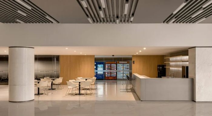 這是一個(gè)白色電器行業(yè)的辦公研發(fā)中心,設(shè)計(jì)師以海為靈感,打造了一個(gè)多元、開放、包容的辦公空間。