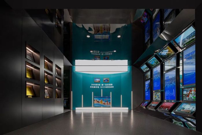 以光為向?qū)?,每個(gè)展區(qū)以線條燈作為聯(lián)系,在暗色中,光成為展廳中最有力的向?qū)?,不同透明度的材料也被不同程度?yīng)用到空間劃分中。