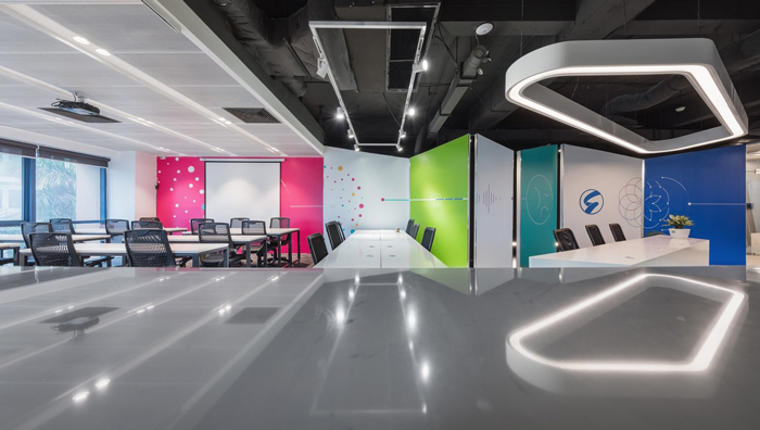 會議室的設(shè)計:此處就是剛剛大會議室與小會議結(jié)合的空間,在這里可以看出設(shè)計師對于設(shè)計的靈活使用,一個小小的轱轆讓整個設(shè)計都動了起來,設(shè)計師需要的就是這樣的效果,設(shè)計師希望讓設(shè)計活過來,讓企業(yè)對此處空間可以隨意的進(jìn)行組合,達(dá)到高效辦公的初衷,這也是設(shè)計師給大家的意外之喜。