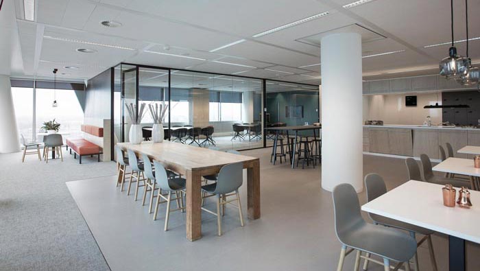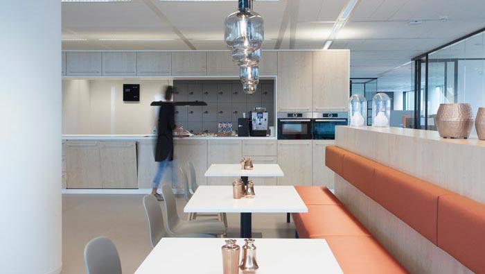 小型辦公室茶水間設(shè)計:此次的設(shè)計類似于咖啡廳,設(shè)計師這樣設(shè)計的目的,就是希望為茶水間帶來更多的屬性,讓茶水間承擔(dān)起更多的責(zé)任,因為在設(shè)計師看來茶水間是員工休息的不二場所,此處不僅可以滿足客戶、員工在此處交流、洽談,同時也讓茶水間更趨于人性化。