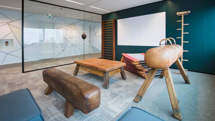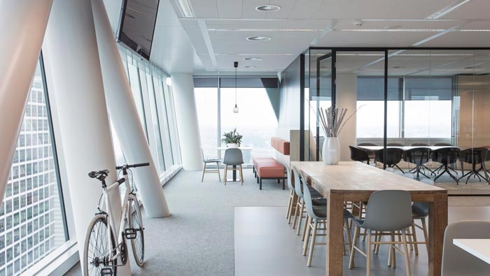 小型辦公室交流區(qū)設(shè)計:此處靠近落地窗,在此處設(shè)計的目的就是希望將室外景色引入室內(nèi),因為在設(shè)計師看來辦公室設(shè)計,本身就是就要結(jié)合可利用的元素,如此才能將空間開發(fā)到極致,此處作為交流區(qū)域、洽談區(qū)域、休息區(qū)域,就是讓人脫離室內(nèi),在相互交流的時候可以感受到自然的氣息。