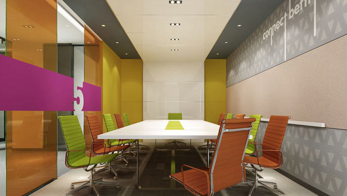 會議室效果圖:精神、合作、剖析、責任是企業(yè)對于員工的要求,同時也是大家聚集在一起的原因,柔和的燈光為空間照亮黑暗,設(shè)計師希望會議可以指引企業(yè)前進的方向。