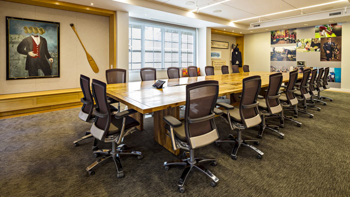 會議室設(shè)計效果圖:整個空間除了會議桌椅之外,設(shè)計師沒有設(shè)置其他的設(shè)計,這樣是為了保證空間的純凈化,設(shè)計師希望企業(yè)的會議開展,不會受到其他的干擾。