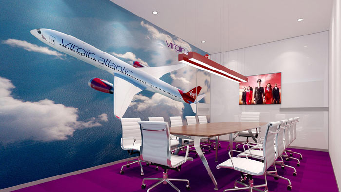 會議室設(shè)計效果圖:飛機正是遨游的象征,設(shè)計師希望員工的想法,如飛機一樣遨游在無邊無際的天空中,設(shè)計師希望員工既有實力又有想法,這樣企業(yè)才能越做越好。