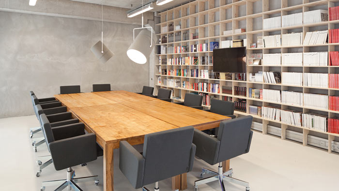 辦公會議室裝修效果圖:會議室、閱讀室是此處空間的兩大屬性,這是設(shè)計師希望將空間的使用達到最大化,閱讀讓人成長,會議室實踐解決問題,兩者之間和諧共處。