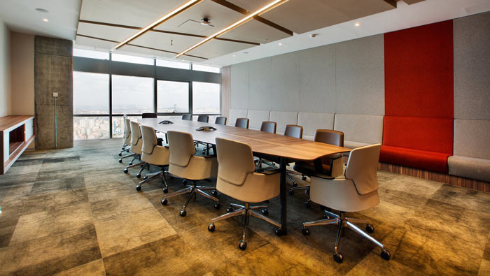 會議室設計方案:空間可以容納將近30個人,會議桌可以容納16個人,邊緣沙發(fā)可以容納十幾個人,設計師要做的就是在滿足企業(yè)需求的同時,將空間開發(fā)到最大化。