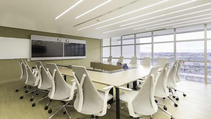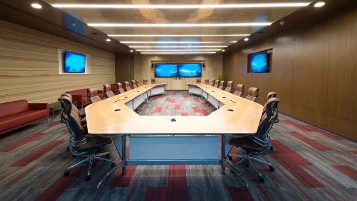 會議室設計方案:異性的會議桌是為了擺脫傳統(tǒng)四四四方的設計,這樣做的目的就是為了沖破桎梏,讓企業(yè)越走越遠,沖破桎梏是為了讓企業(yè)不拘泥與現(xiàn)在,而是要著眼于未來。