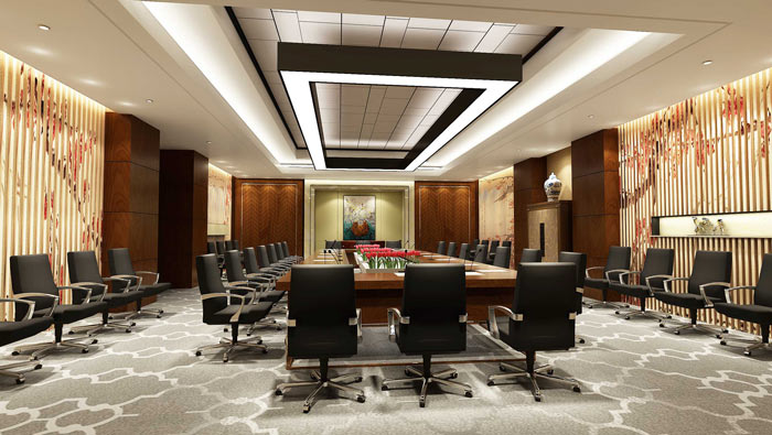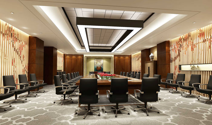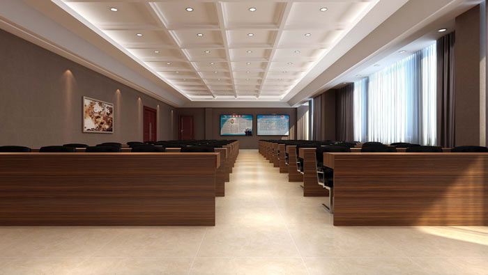 多功能會(huì)議室裝修設(shè)計(jì):政府機(jī)構(gòu)的多功能會(huì)議室都是非常正式的,故此設(shè)計(jì)師在設(shè)計(jì)中,沒(méi)有采用流行的設(shè)計(jì)手法,而是采用較為傳統(tǒng)的設(shè)計(jì)方式,整個(gè)空間整整齊齊、落落大方。